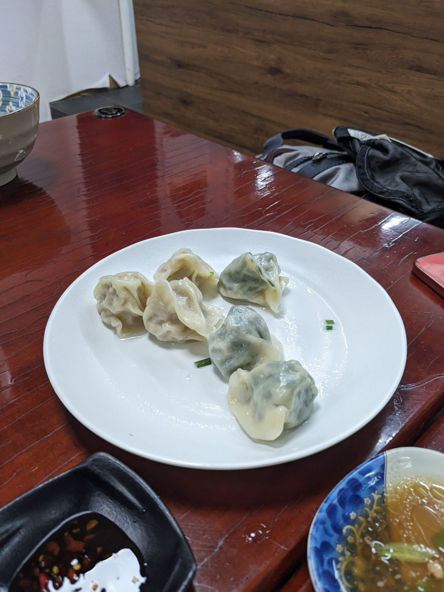 小吃のケースを冷蔵庫と勘違いして、「ビールは?」と聞いたら「ないよ。隣!」との事。全家でビールを調達して、水餃(韮、キャベツ)、青菜、牛乾拌麺を頂きました。水餃も青菜もとってもウマい!!ビールによく合います。そして、主役の牛乾拌麺。