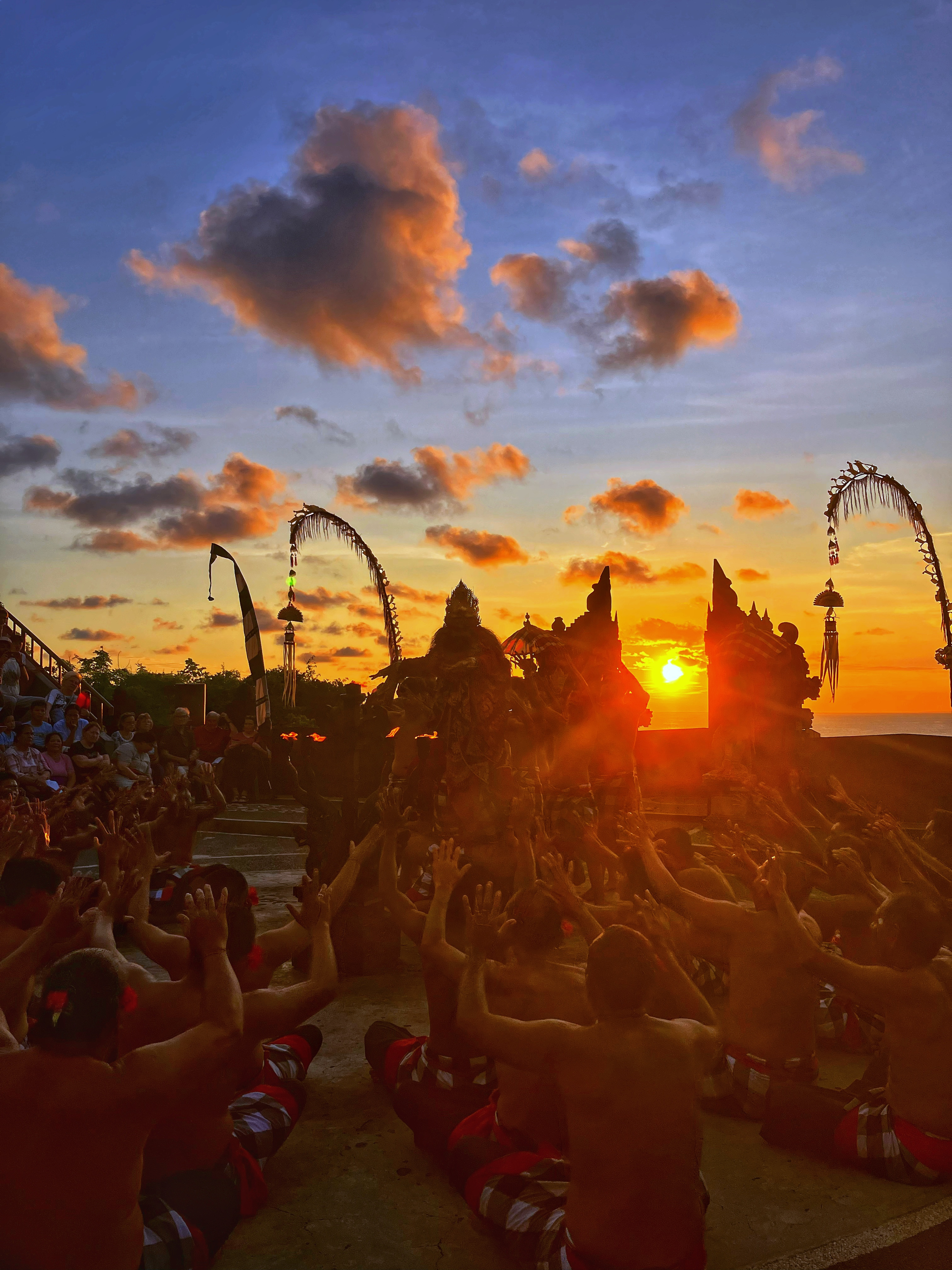 だいたいツアーで行く人は18時頃だと思いますが、夕日をバックに見るケチャダンスは座る席によっては夕日が眩しくて演者をよく見られない可能性もあります。