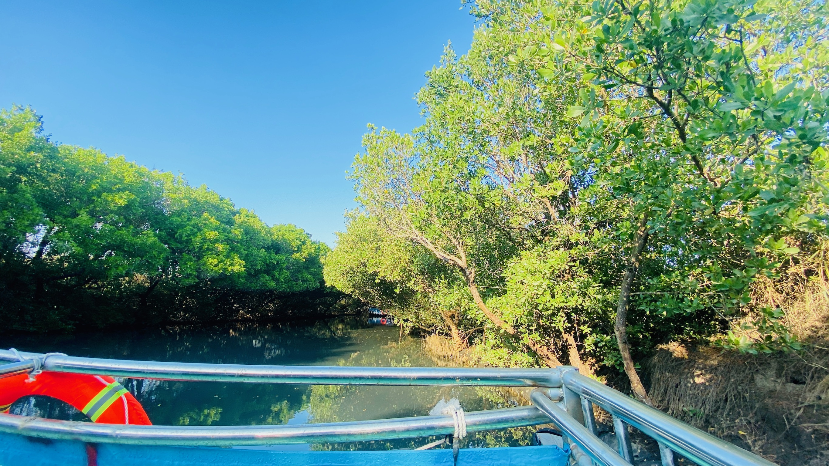 マングローブの林の中の水路をボートでゆっくり進んでいきます。