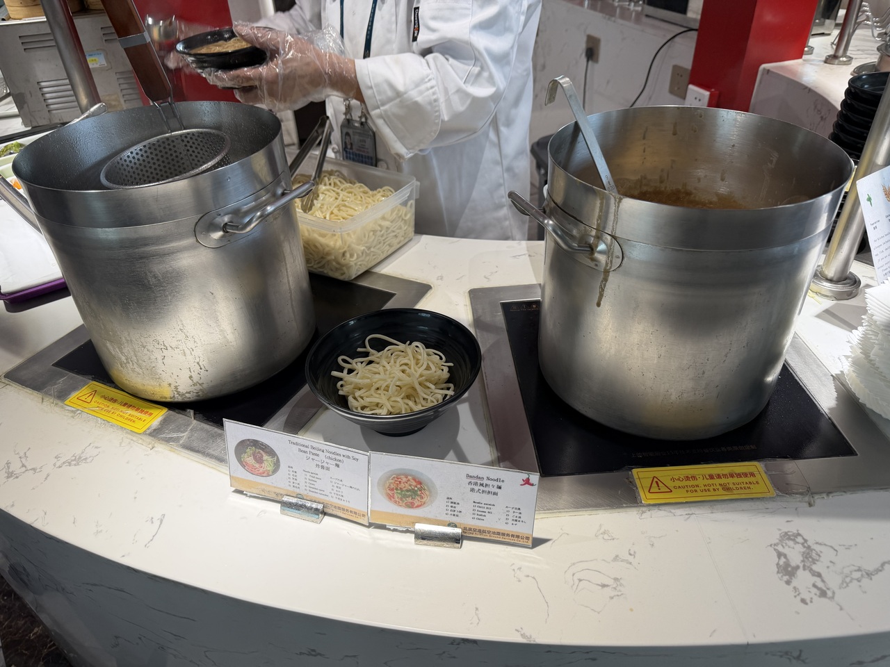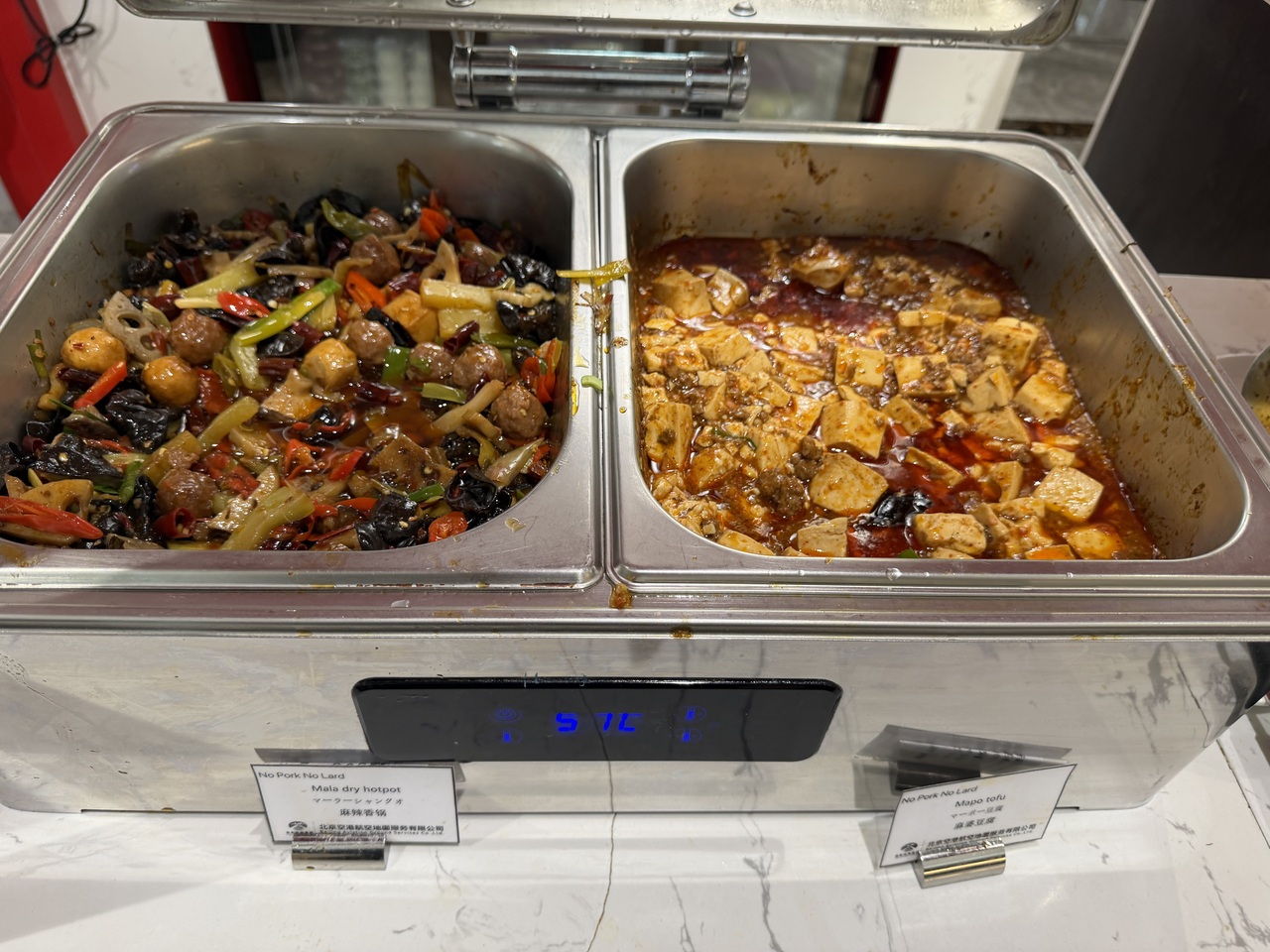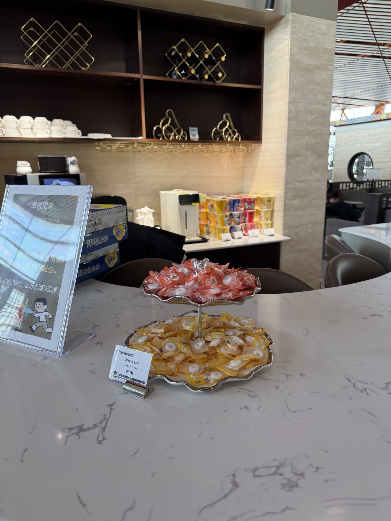 JAL利用でワンワールドのラウンジ。細長いつくりで広いですが、食事を提供するエリアは混雑していました。麺類やホットミールが比較的充実していて人気でした。サンドイッチなどのスナックもあります。フルーツは個包装で種類は少ないです。味はどれも普通でした。