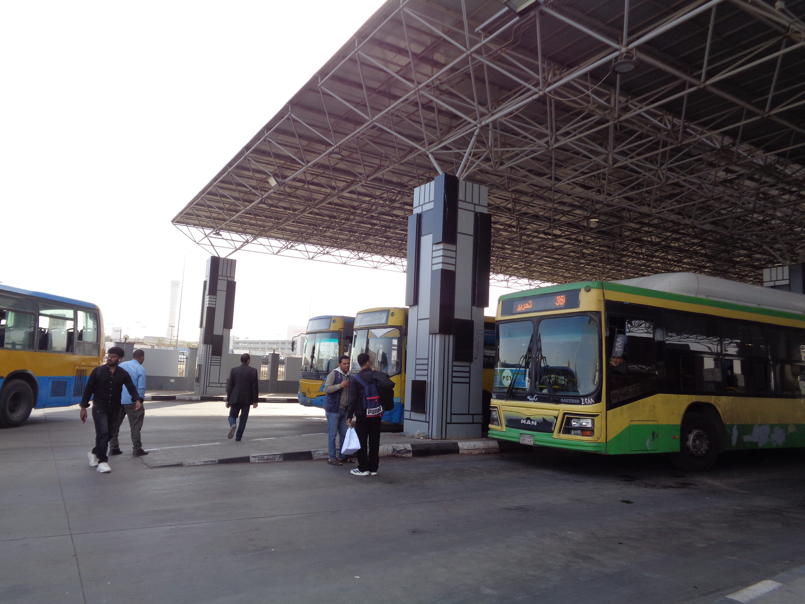 カイロ空港のターミナル3に到着して、シャトルバスで空港バスターミナルに行き、356番バスでタハリール(考古学博物館の北のバスターミナル)まで行きました。