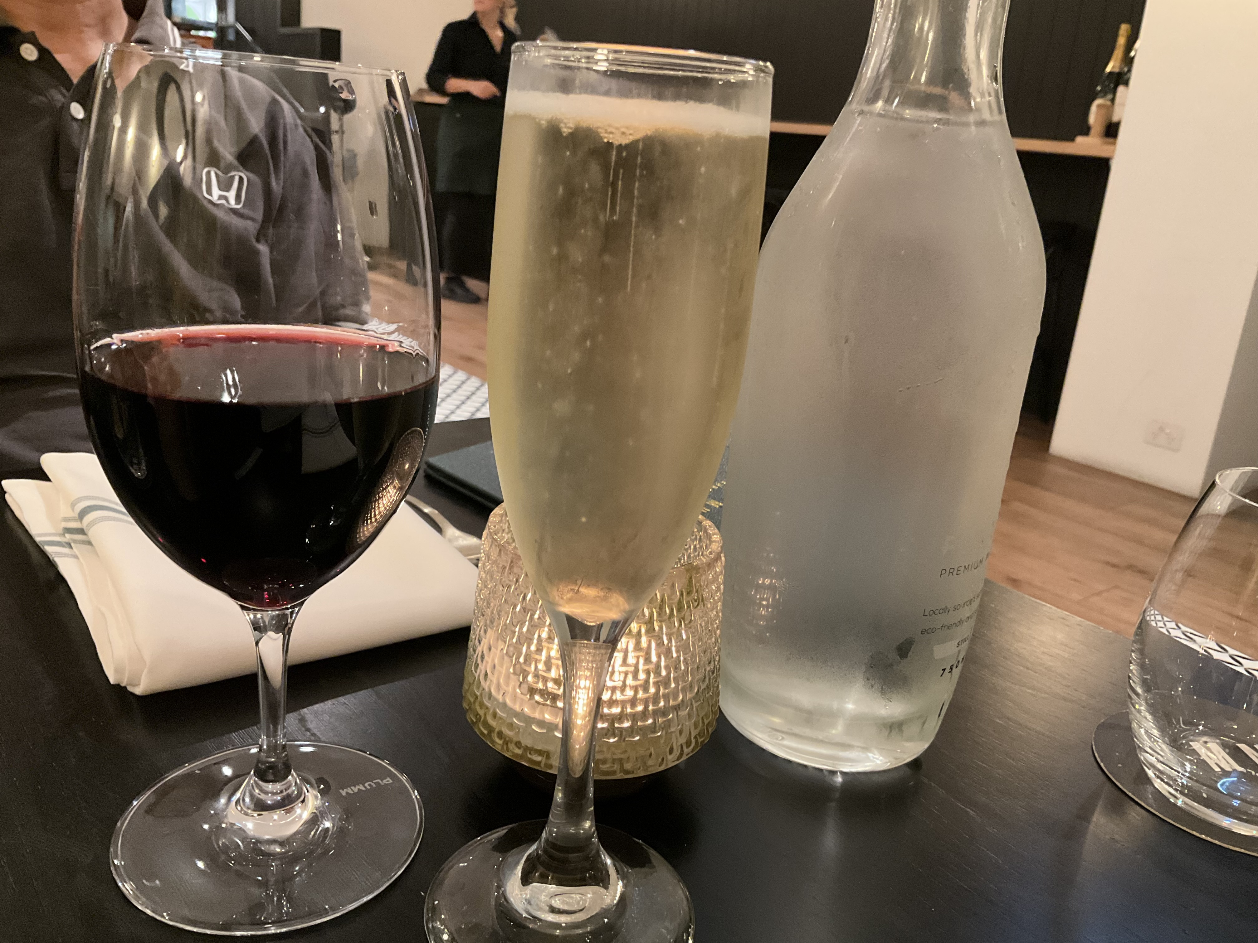 グルメチーズバーガーまたはハルーミバーガー、ジェイド・エステートのグラスワインまたはシドニー・ブルワリーのビール