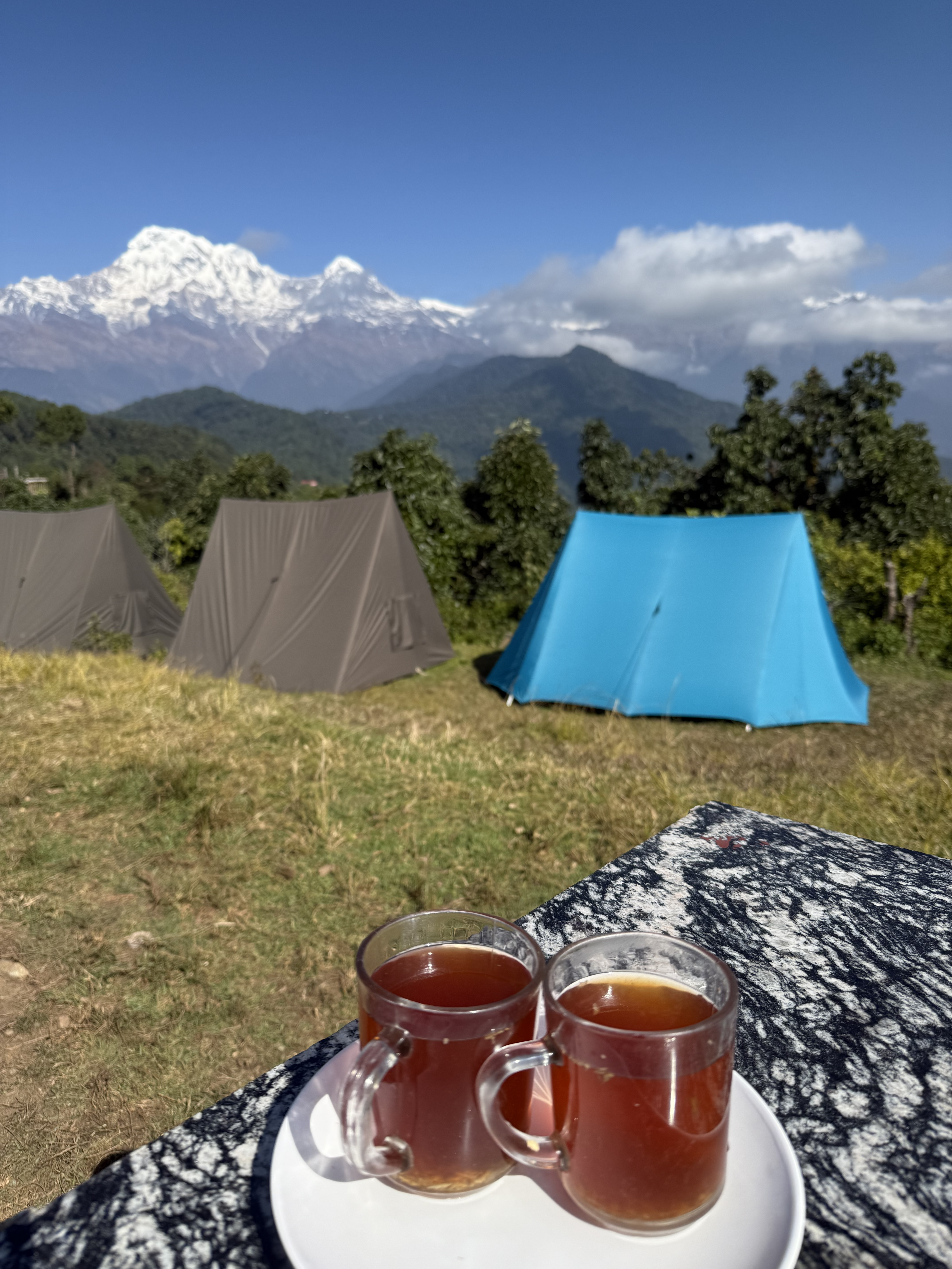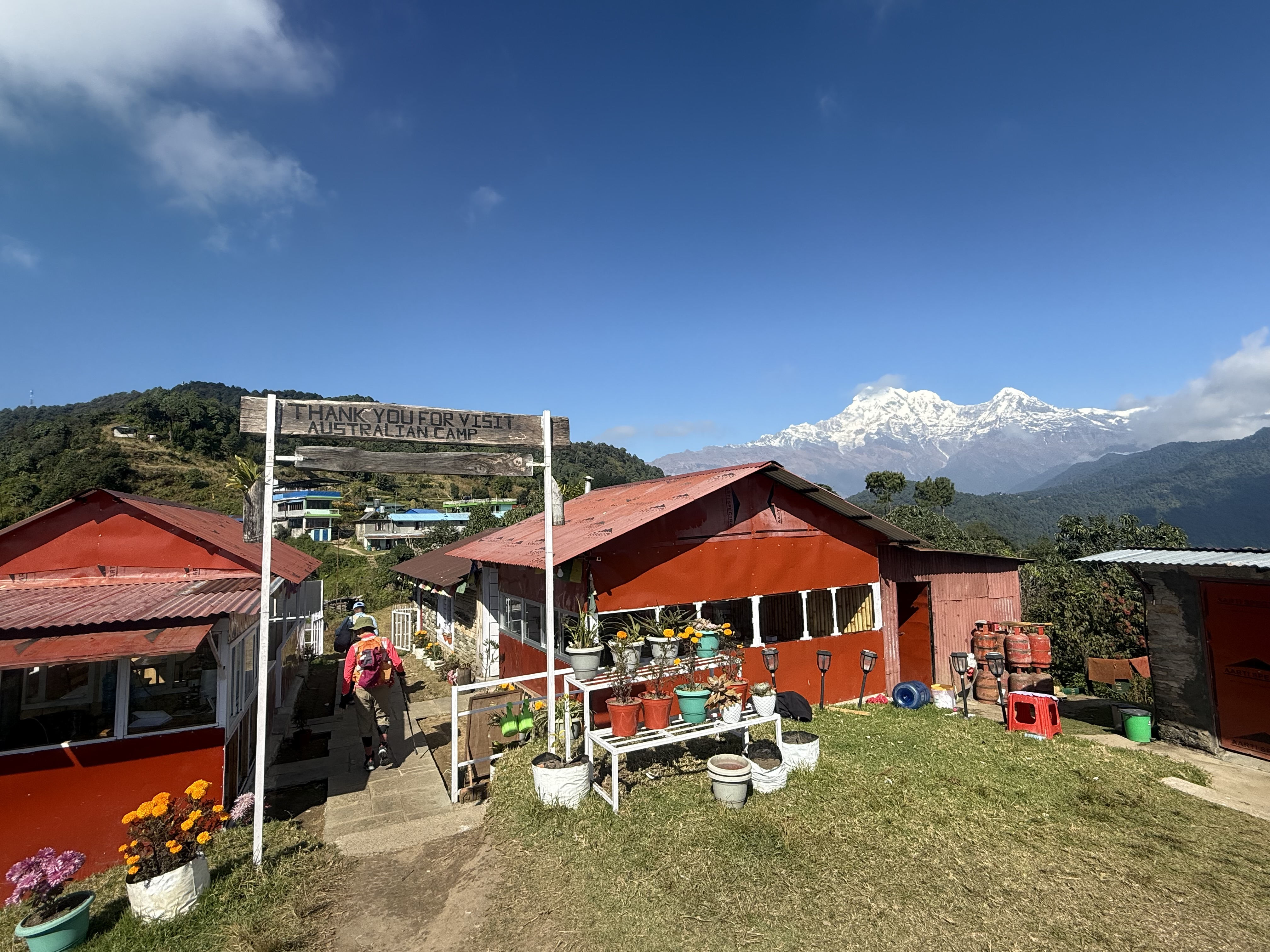 車でカンデまで行ってここからスタートします。ロッジやお店もあるので食事やお茶を飲むこともできます。オーストラリアン・キャンプまでは1時間10分くらい歩くと着きます。そこからはアンナプルナ、マチャプチャレなどの素晴らしい眺めが見られます。