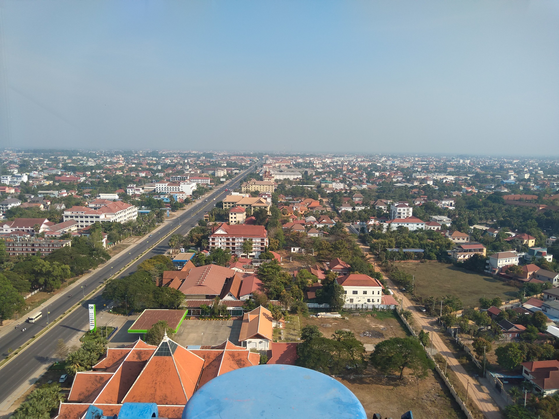 観覧車のスタッフのポロシャツの方にはカンボジアと日本の国旗があしらわれている。「日本から乗りに来たよ」というと喜んでくれた。ゴンドラ内はエアコンが効いているので快適に過ごすことができる。高さ80mまだ上がるがアンコールワット遺跡群まで距離があるので見下ろすことは残念ながらできない。でも、高い目線からシェムリアップの町並みを眺めることができるのは貴重な体験だと思う。