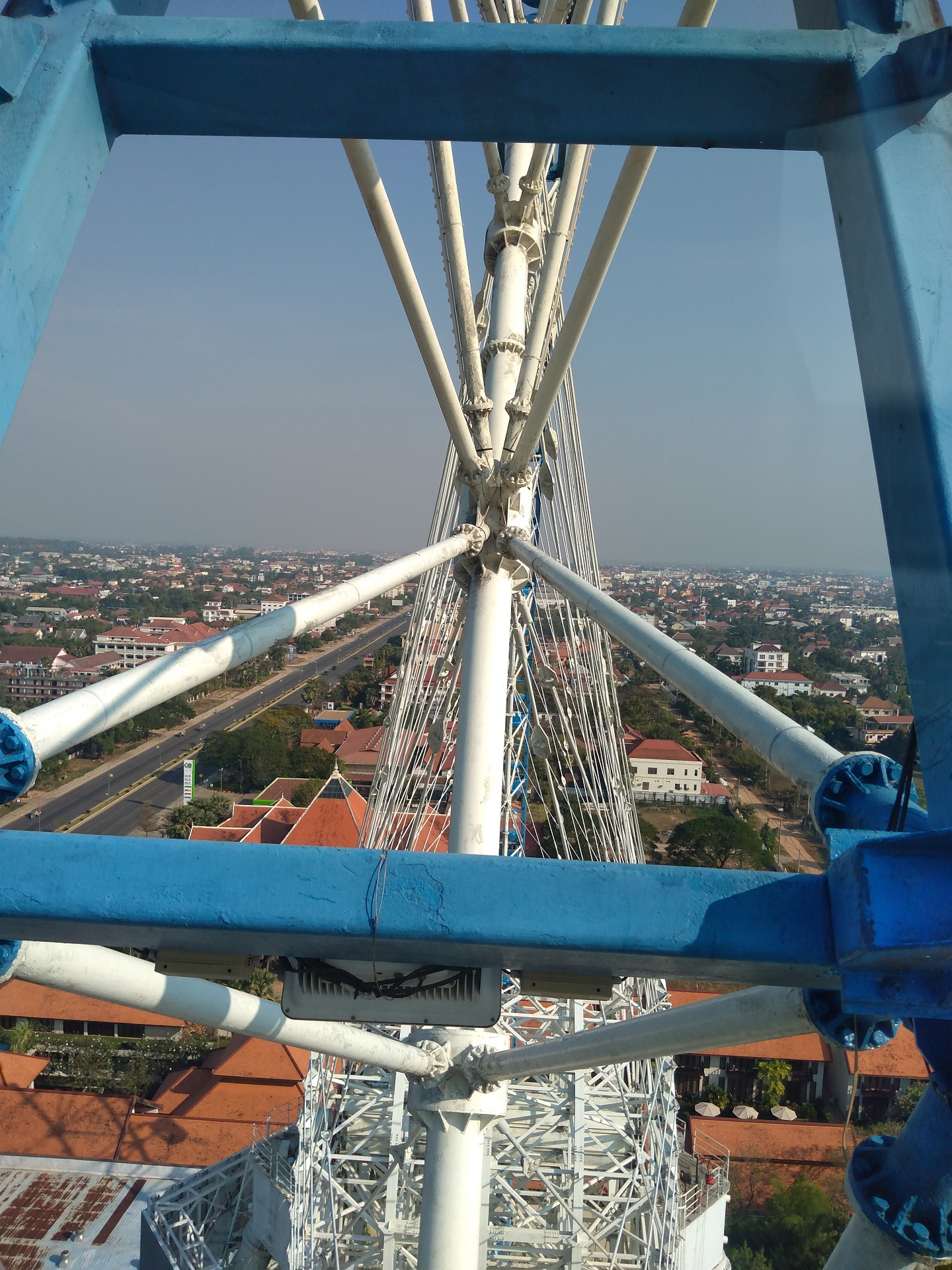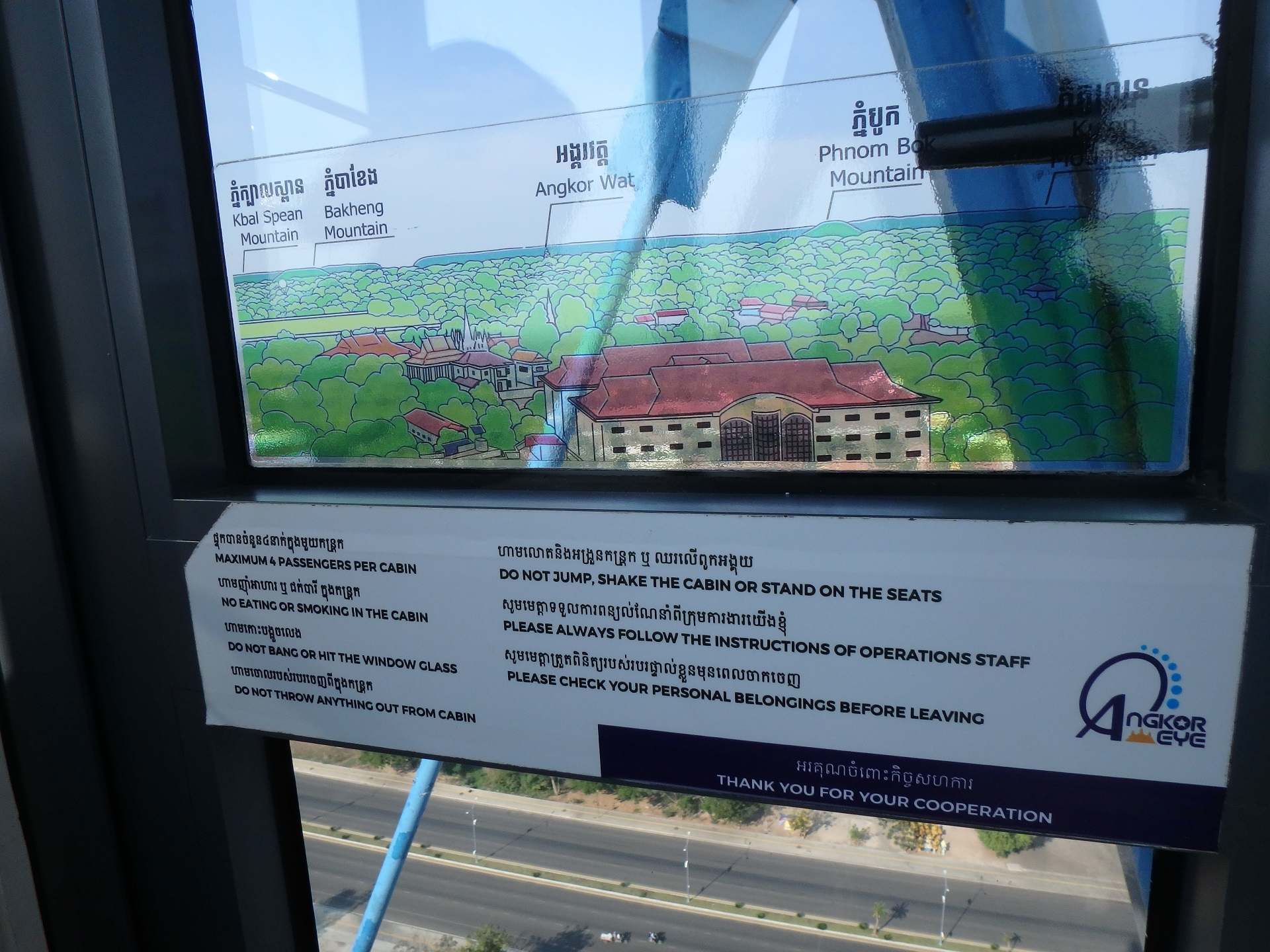 シェムリアップでは景観保護のため建造物の高さ制限があるようだが、政府の許可を得て設置されている。何故この観覧車に乗りに来たのか?それはこの観覧車が「彷徨える観覧車」だからだ。もともとは日本の広島県呉市にあった呉ポートピアランドで「ジャイアントホイール」という名称で営業していた(1992ー1998)。その後は福岡県北九州市にあったスペースワールドへ移設され「スペース・アイ」という名称で復活していた(2000ー2018)。最終的にはスペースワールドが閉園した後、海を越えて遥かカンボジアのシェムリアップへ移設されている(2020ー)。