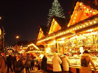 ★クリスマスマーケットとは・・・。ツリーやイルミネーションで彩られた場所にクリスマスグッズやギフト商品、食べ物を売る屋台が所狭しと並び、温かい食べ物や飲み物もその場で楽...