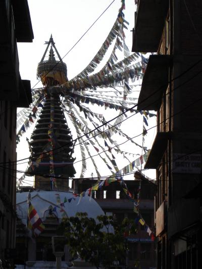 同タイトルのネパールツアーのNo.3です。カトマンドゥの街ブラののち郊外キャンプ、またまた街に帰って、さらに郊外ヒマラヤ展望地へ繰り出す、というところから、最後の街堪能...