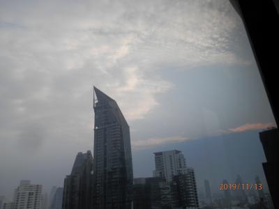 bkk9回12火曜1コンパス・スカイビューホテルに滞在中のバンコクの空。11月ですから。雨季は終わってるでしょうけれども。晴れ上がった空は無かった。スクンビット通りが見...