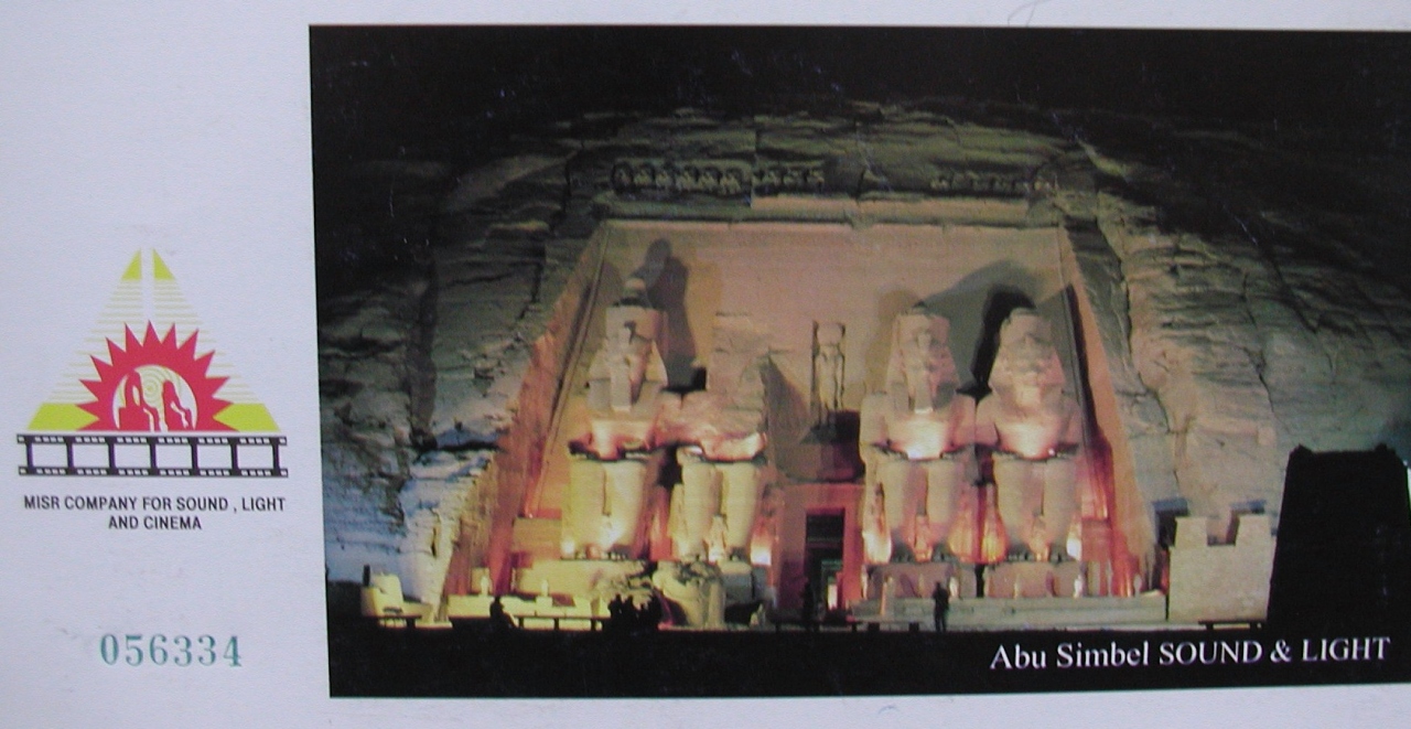 ルクソールのカルナック神殿、カイロのピラミッドのショウは、言語の日がそれぞれ違っていて、わからない日もあるようなのですが・・・ アブ・シンベルでは、メインの言語はその日の入場者層で決まるそうです。 私の訪問日は嬉しいことに日本語! しかも日本人でなくても、座席下にセットされたイヤホンで言語を選択すれば、独・仏・英・伊 などの母国語の方でも一緒に楽しめます。夜は2回ショウがありました。