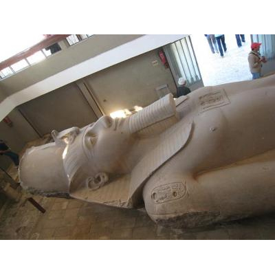 メンフィスを訪れたのは1月上旬、ちょうど真昼間で、日射しがきつかったです。長袖の人もけっこういましたが、私は半袖でした。屋外にいくつか像が展示されていますが、ラムセス2世像は屋内に寝かせて展示されているので日射しは気になりません。