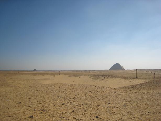 1月上旬にダフシュールを訪れましたが、この時期のエジプトは昼間暑くて夜肌寒い気候です。塵が舞って景色が見えにくいこともしばしばありますが、この日は晴れ。屈折ピラミッドや崩れかけのピラミッドがはっきりくっきり見えました。