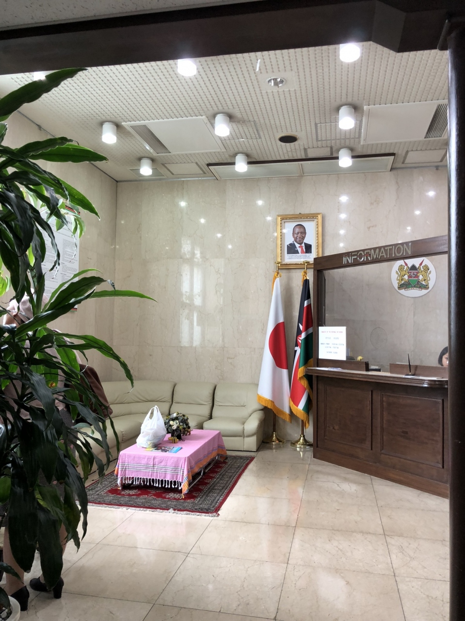 3週間後にケニア旅行に行くのでビザの申請をしました。ケニア大使館のホームページをみるとオンライン申請ができるそうですが、パソコンが苦手なのでケニア大使館まで申請に行きました。4トラベルのけまりーぬさんのクチコミを参考にさせて頂きました。 渋谷駅から渋11バス、田園調布行きに乗車し、八雲3丁目下車。40分ゆられバス停から1分。うなぎ大黒屋の隣に門がありインターホンでビザの申請と告げます。 きりんが出迎えてくれます。もちろん受付の方は日本語ができるので安心です。 帰路は自由ヶ丘まで歩きました。10分程です。 ビザは平日の午前中のみの申請受付。翌日の午後以降1週間以内の午後のみ受け取りとなっています。 提出書類はホームページからダウンロードした申請書(書き方は見本を参照)と写真、パスポート、飛行機の予約確認書です。 個人での申請代金は¥5500でした。参考までに旅行会社に代行してもらうと手数料が¥6480です。