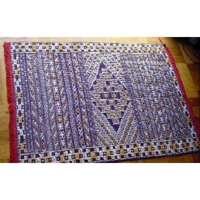 マラケシュのサボテンの実を売る屋台で親しくなったおじさんの絨毯屋を覗くうちに「小さいものなら一枚くらい買ってもいいかな?」と思い、ベルベル絨毯を購入してきました! もちろんモロッコ式の値段交渉もじっくりと行い、「あなたのかばんをくれるなら激安にするよ」など、わけの分からないことを言われて爆笑したりもしました。私が買ったのはベルベル式の毛足の短い絨毯だったので、小さく折りたたんでくれ、スーツケースに入れて持って帰れました。ただし、現地では全く気にならなかったのですが、家に持って帰って開いてみたらなんともいえない「獣くさい」においがしたので、匂いの取れるスプレーをして干す…を何度も繰り返しました。今はすっかりにおいも取れ、我が家の床に敷いています。他にも壁に貼っても素敵かと思います。