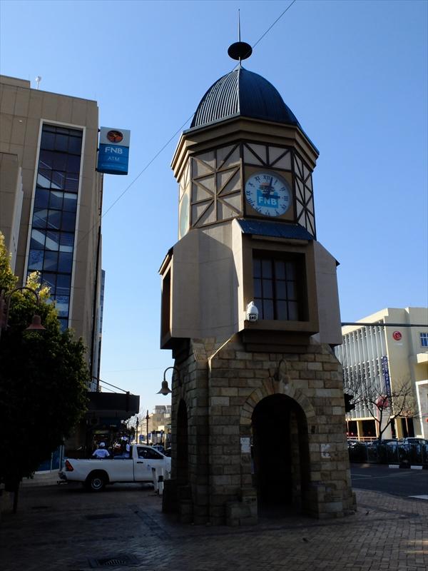 ヴィントフックの目抜き通りのインデペンス通りには銀行の本店・支店もあってATMも多く便利なんですが、この画像の時計塔そばにあるFNB(ファースト・ナショナル・バンク)という銀行のATMは表通りから少々見えにくい場所にあり、怪しげな人が出没します。