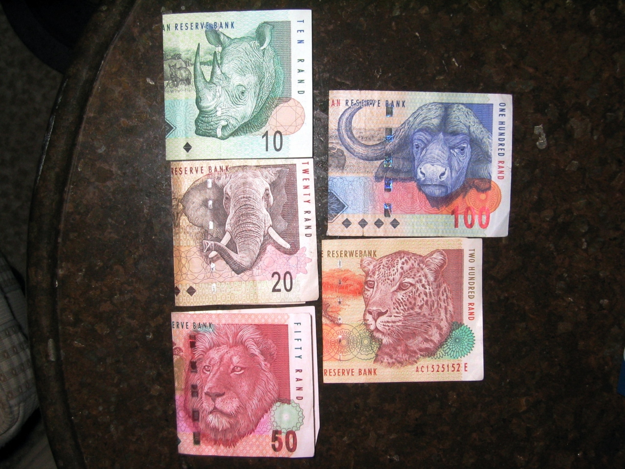 写真はナミビア・ドルではなくて、南アフリカの(ビッグ5)ランド紙幣(R)。