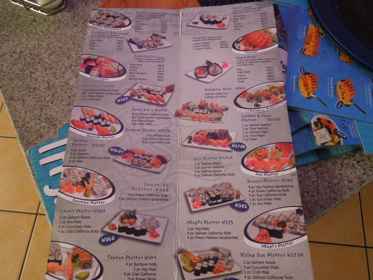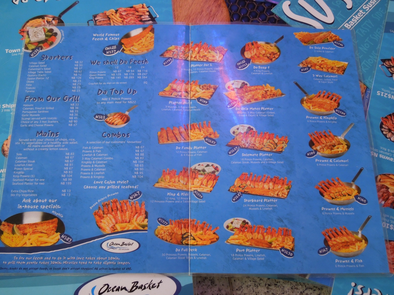 南アフリカ一帯を占める、フランチャイズのシーフードレストラン。 ウイントフックでは、ショッピングセンター2Fにあり買い物がてらに立ち寄るのに都合いい。また、シーフードのほか、寿司やデザートも選べる。値段もお手頃(一皿、1.000円前後) ケープタウンでは、ロングストリート(long St)を南に行ったところのクルーフ通り(Kloof St)に面していたと思う。
