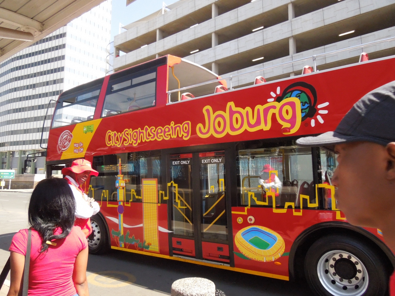 世界の各地にあるというhop on hop off bus 街の主要ポイントをめぐる、二階建てバス。決められたバス停で何回でも乗り降りできる。 ヨハネスブルグの場合、一周2時間かけて11のスポットを巡る。一日チケットがR150。二日がR250。 出発地はGautrainのPark Station停留所前。月~金は40分毎(09:00~17:35)、土日祝は30分毎(09:15~17:55)に周遊する。 車内ではイヤホーンからの説明を聞きながら見物できるが、残念ながら日本語は今の所用意されていない。 支払いはクレジットカードでもできる。予約は必要ないが、オンラインで予約をすると割引が受けられるようだ。 www.citysightseeing.co.za *世界のほかの都市で次回に利用する場合、10%の割引が適用されるということなのでチケットは持っておいたほうがいい。