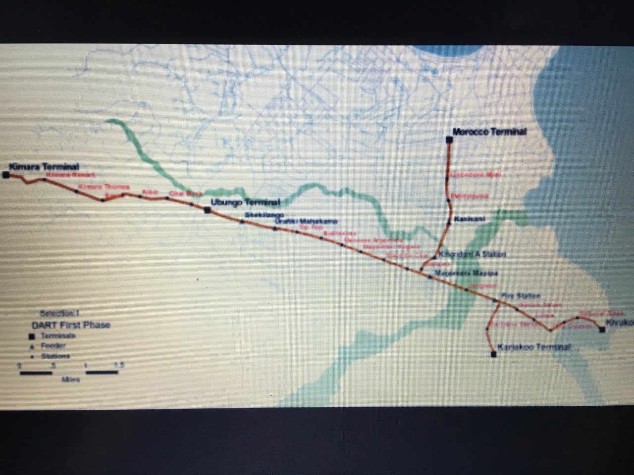 運行開始された路線はフェリーターミナル付近始発で、カリアコーマーケット方面、モロゴロロードのキマラ、カワワロードのモロッコを結ぶ区間となっています。