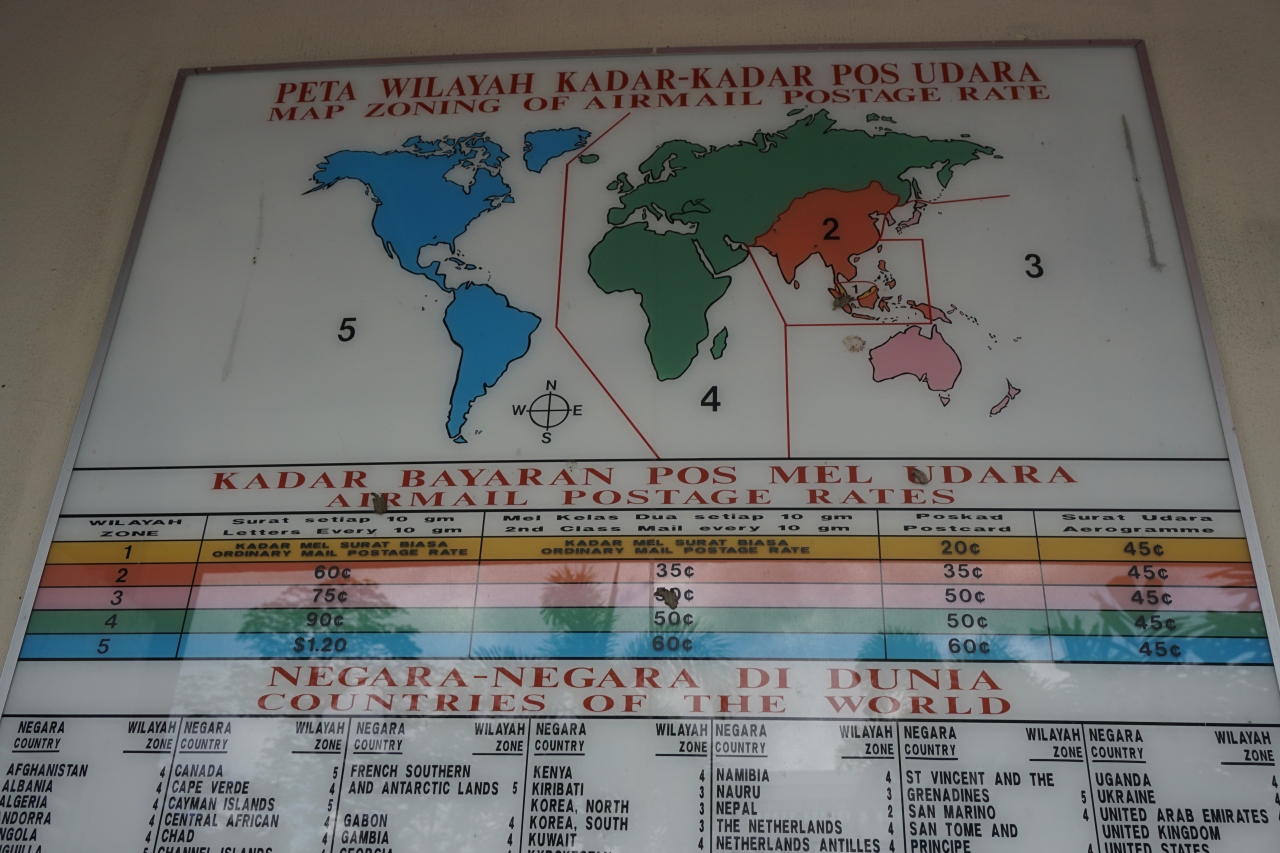切手は日本まで0.5BND。郵便局で購入できなかったので空港の書店で購入。