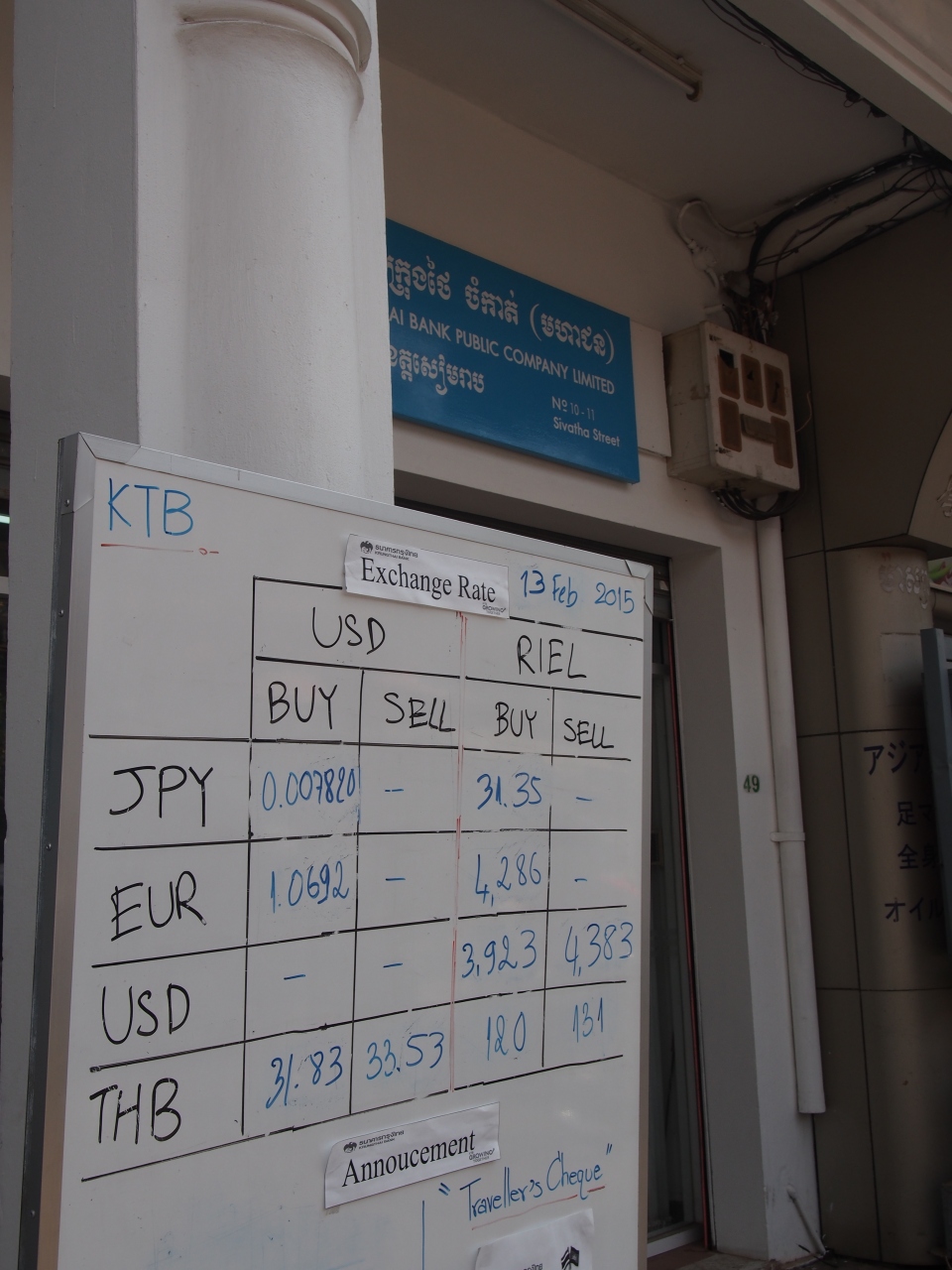 宿泊したソマデビホテルのすぐ横に銀行の両替所がありました。