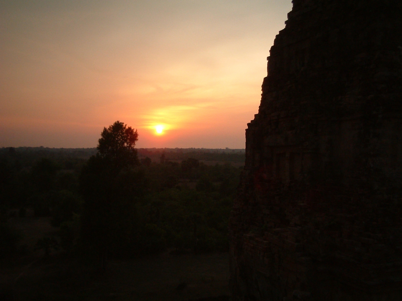 サンセットを見にプレループに行きました。プノン・バケンより空いていて足場もいいし上りやすいしおすすめ。でも、アンコールワットの中央祠堂よりやや上りやすい程度なので、急な階段が苦手な人には辛いかもしれません。夕日は文句なくとても美しかったです。
