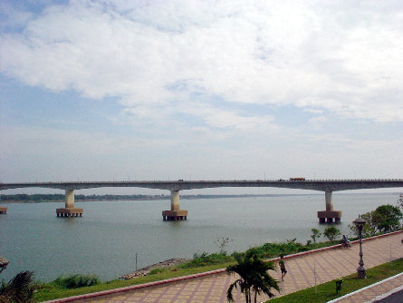 この町で一番目立つのはメコン川に架かっている「キズナ橋」で日本の援助で架かった橋のようです。