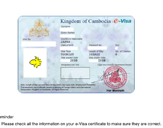 カンボジア王国 公式電子ビザ e-Visa