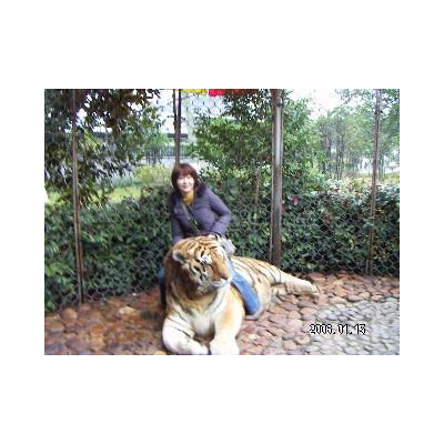 七星公園で虎に乗って記念撮影できるってきいてたから、密かに楽しみにしてました。ガイドさんに「どう?」と聞かれ、即答で「お願いします!」。50元払って、飼育員が寝てる虎を起こして、撮ってもらった1枚です。とっても太ってて、優しそうな虎でした(笑)でも、他には誰も続きませんでした。楽しいのに。(笑)