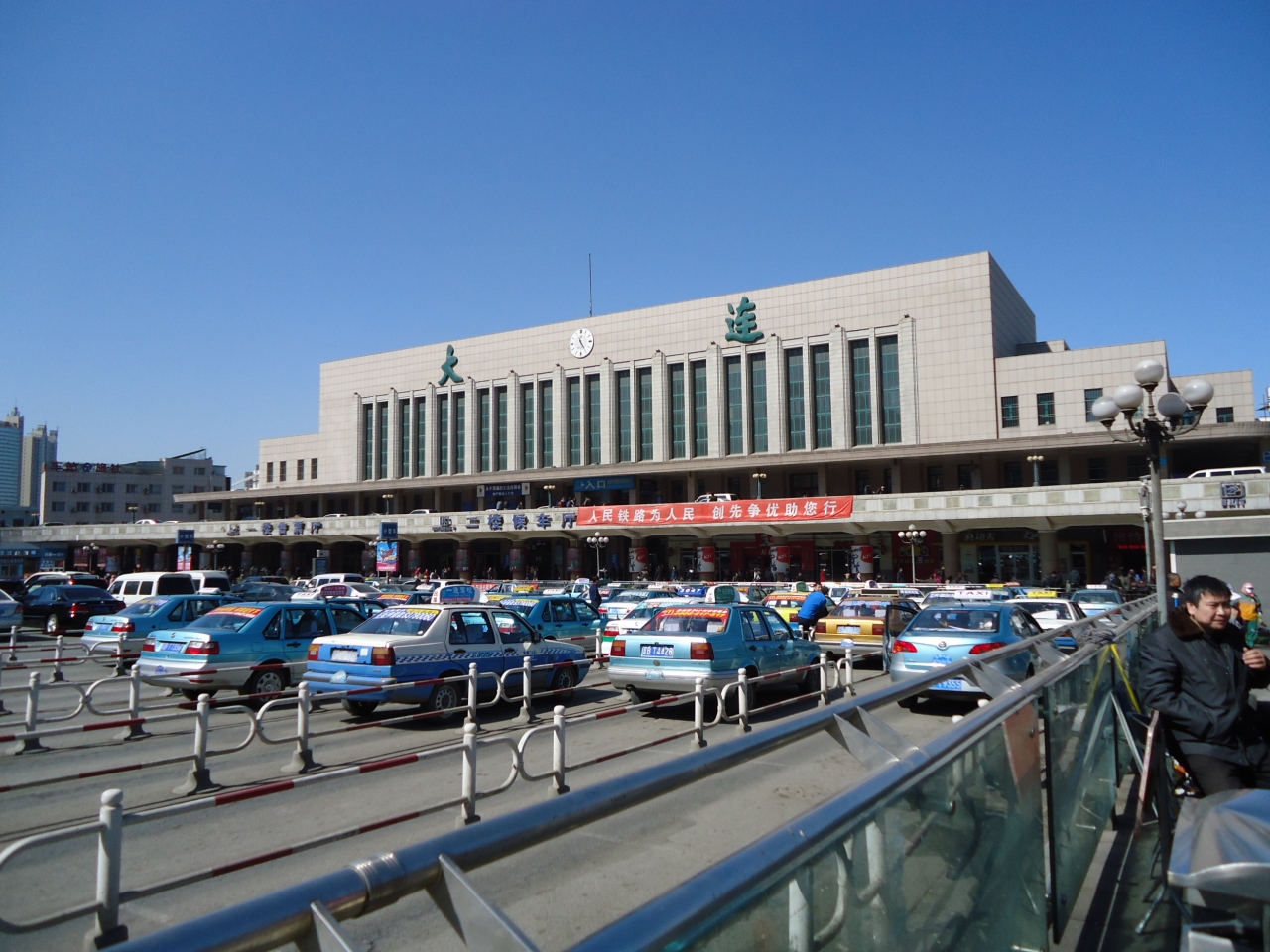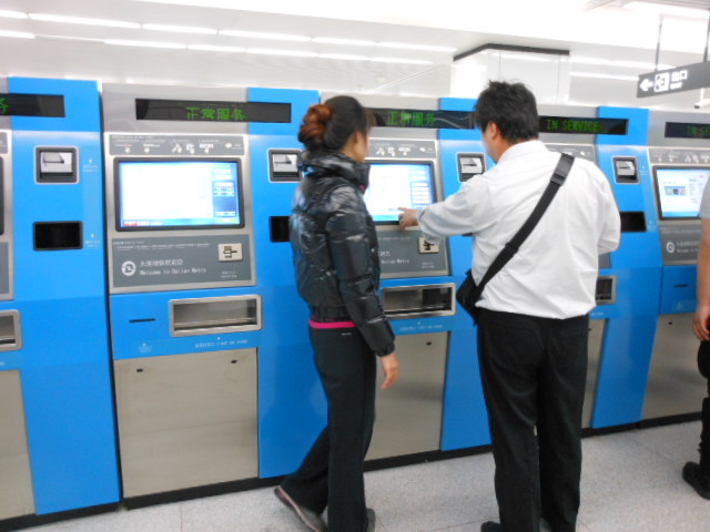 大連国際空港に到着して、タクシー乗り場へ行きました。タクシー乗り場に一台もタクシーが客待ちしてません。国内線へ行けばタクシーが拾えるかもしれないと歩き始めました。すると地下鉄への階段の入り口がありました。切符売り場には、襷をした自動切符販売機の説明要員が居て、切符の買い方を説明しておりました。5月から開業したばかりで、ホテルのある人民広場まで3元でした。空港から市内まで安くて早くてとても便利です。地下鉄が開通したので、皆がタクシーを利用しなくて、タクシーが客待ちをしていないのです。タクシーは乱暴で、客あしらも良くないし、高いので敬遠されているそうです。