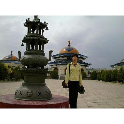 成吉思汗(ジンギスカン)陵です。オルドス市の南35Kmにあります。ジンギスカンはどこで亡くなったのかは定かでないそうです。でも、外蒙古の人々も一生に一度は、ここへ訪問したいと聞いております。巨大すぎる敷地に設けられております。