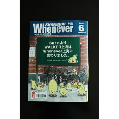 今では上海にも数多くあるフリー情報誌の一つ≪WALKER上海≫の名前が、06年6月1日から≪Whenever上海≫になりました。内容はこれまでと同じく、上海周辺のレストラン、各種店舗、病院、イベントやサークルの紹介のほか、その時々の特集が組まれるようです。