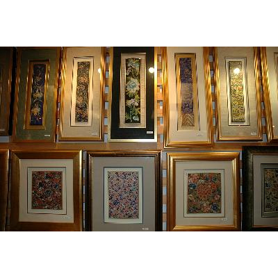 額に入った中国各地の古刺繍や小物類がメイン。お値段的には高いですが、仕上げはいいと思います。