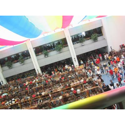 巨大な建物内部の中央はおみやげやさんワゴンの海になっています。