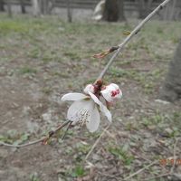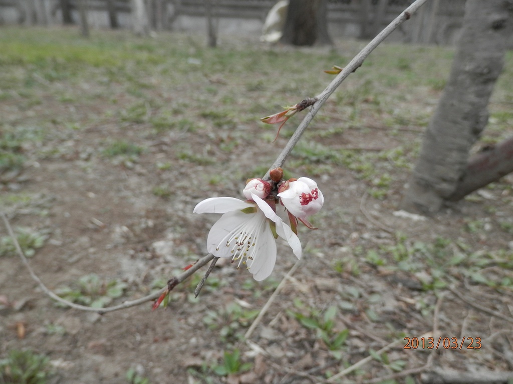 3月23日に見たアンズの一枝だけ開いていた花。1週間たたないうちにどの木の花も開いた。