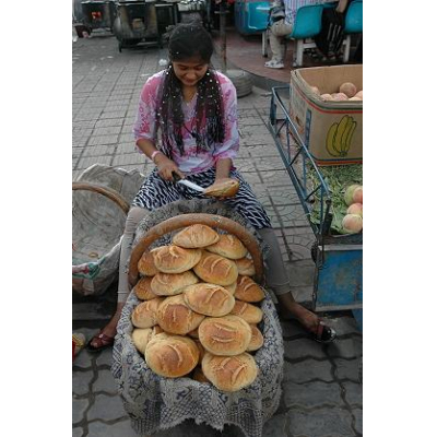 円盤型のナンは新疆ウイグル自治区のどこでも見かけますが、この形をしたパンは喀什(カシュガル)でしか見かけませんでした。これもナンの一種?この売り子さんは中国語がうまく通じなかったので、聞くことが出来ず残念。ほのかに塩味の焼きたてが一つ1元。この画像の物より一回り小さい物もありました。冷めると岩の如くになります。