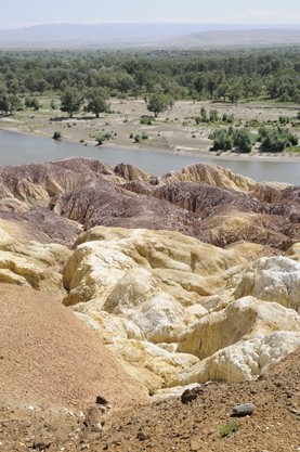 アルタイへの戻りの道筋では、ヤルダン地形の五彩灘のオプション(車代とチケットがそれぞれ別途50元)をチョイス。ウルムチからのカナス湖ツアー客が途中泊する布爾津(ブルチュン)の町で昼食後に寄ってみました。
