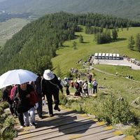 アルタイ山脈の麓にあるこの湖は、200万年前に氷河の侵食によって形成されたのだそう。