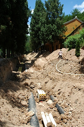 06年8月上旬現在、国清寺へ通じる国清路のうち、木魚山駐車場から先の参道は画像のように工事中で歩行が困難でした。