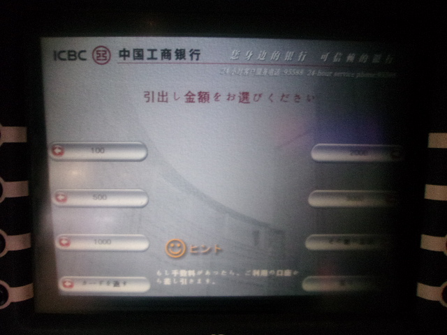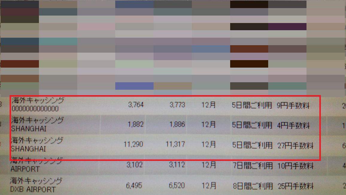 浦東空港のほか、銀行のATM、地下鉄駅のATMと3回のキャッシングでしたが