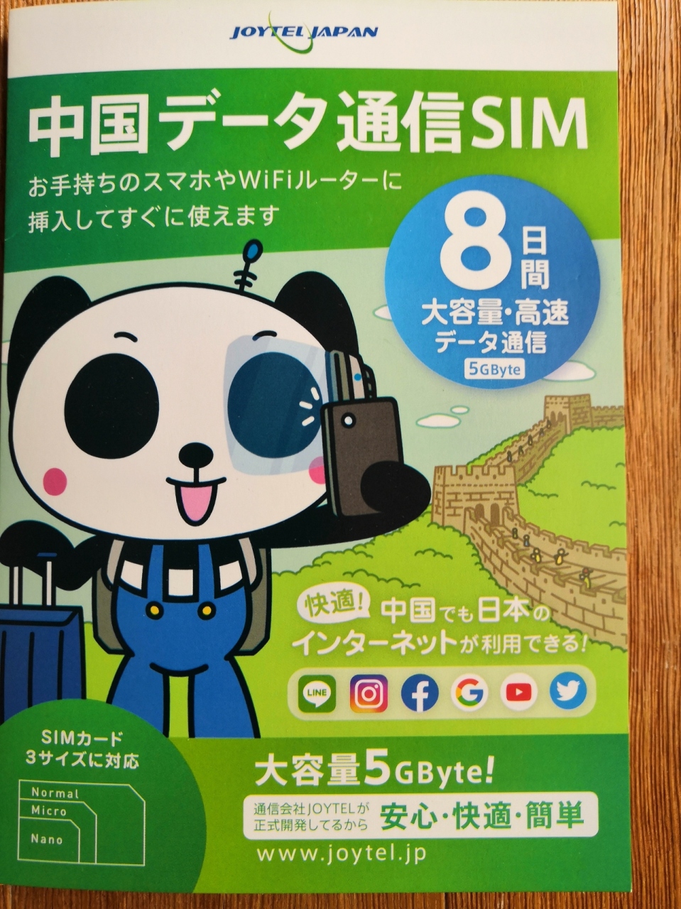 今回はドコモのローミングを利用したが、コロナ前に比べて何か変わったかも・・・と思いつつ使い始めたところ、コロナ前と変わらず金盾(中国政府のネット監視、制限の仕組み)の影響は全くなく、グーグル系のアプリ、LINE等は全て使えた。(ドコモは中国移動へのローミングになっている。)
