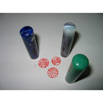 渡航時に1本(銀行印:ブルーメノウ)、帰国後2本(実印:翡翠、認印:グレーメノウ)を注文しましたが、石材と加工料併せて1本300H$くらいで出来ます。(石の種類によります)