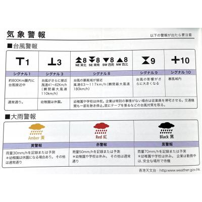 ご存知のように香港は建物や看板がやたらにあり、飛んでくるものが多い為、危ないのでシグナルが出ますと交通機関も停まり外出禁止令が発令されます(会社もシグナル8が出ると従業員を帰宅させなければなりません)。タクシーも捕まらなくなります。外に出て怪我しても保険の対象外となります...。