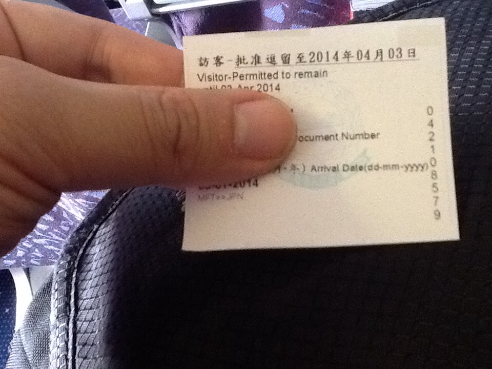 2013から出入国のスタンプは押されずに代わりに小さな紙が発行されるようになりました。一応滞在中は携行するように言われますがなくしても何ら問題ありません。スタンプがどうしても欲しい場合はお願いすれば押してくれるようです。出国時は市内の香港か九九龍駅でチェックインして荷物預けることができます。