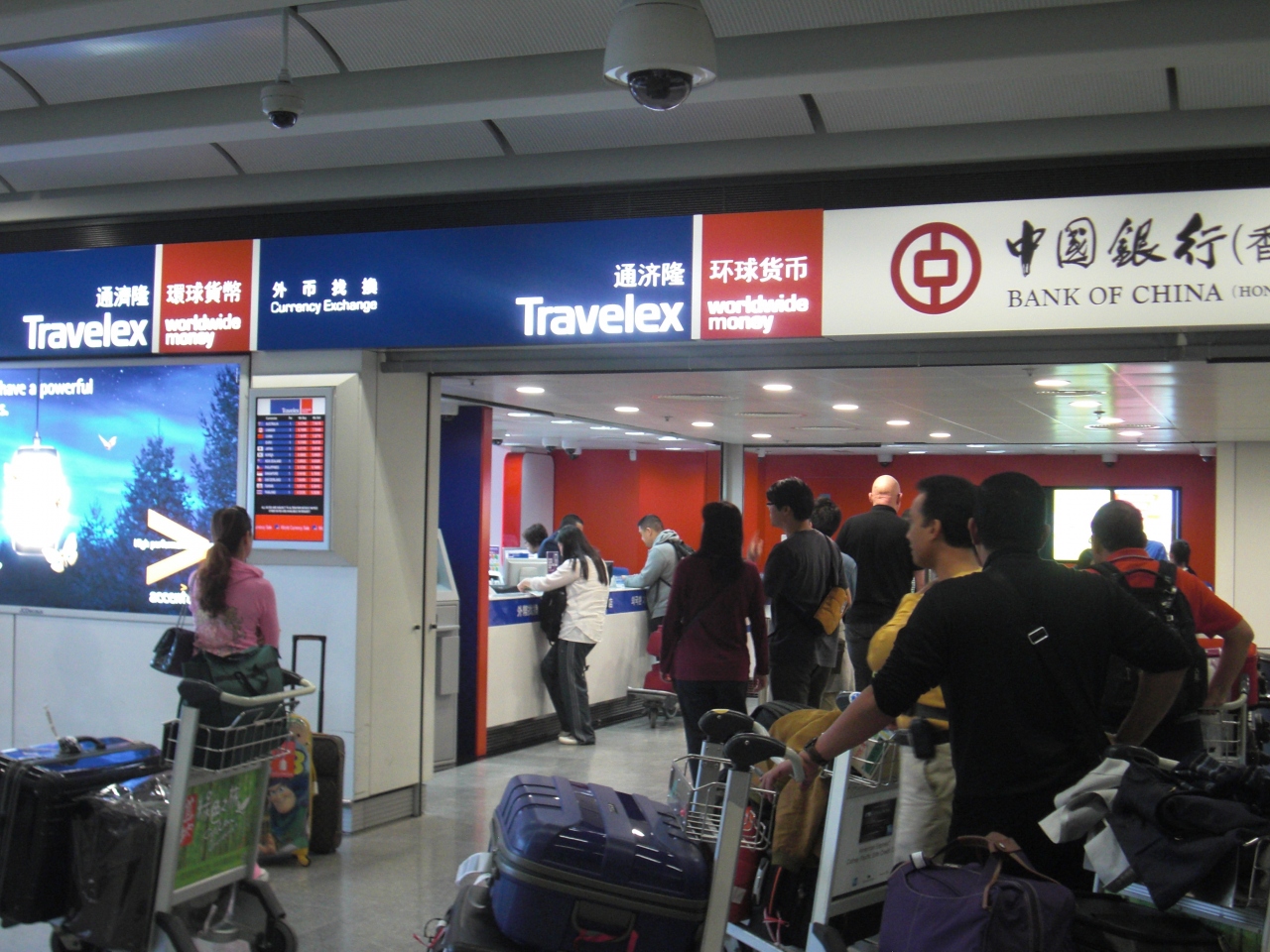 到着して香港ドルをTravelexで空港で手に入れましたが、どこもやはり似通ったようなレートでした。(のように見えます)。仕方がないので、とりあえず5千円だけ両替しました。その後、市内のチョンキンマンションの1階で両替しましたが、かなりお得でした。
