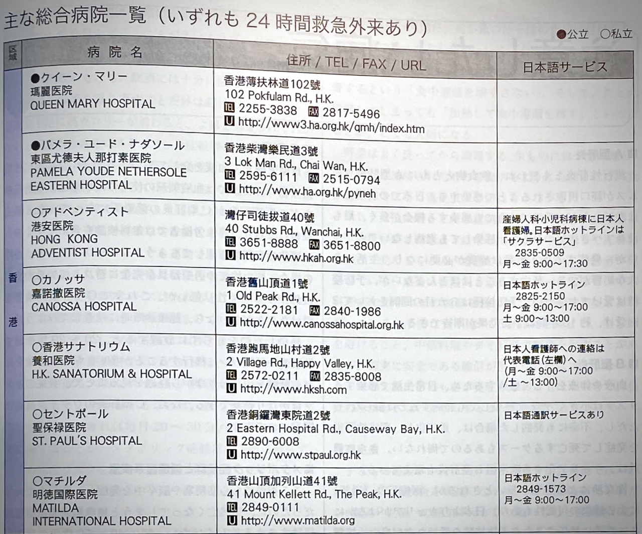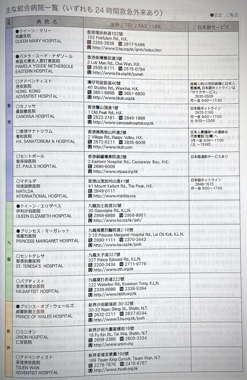 備えあれば憂いなし..。なお、香港は公立病院は設備はまともですが、医者は責任感がなくダメダメです。通常は旅行傷害保険に入っているでしょうから、一番いい私立病院に行くことです(プライベート病院、金さえ出せれば最高の医療を享受することができます)。