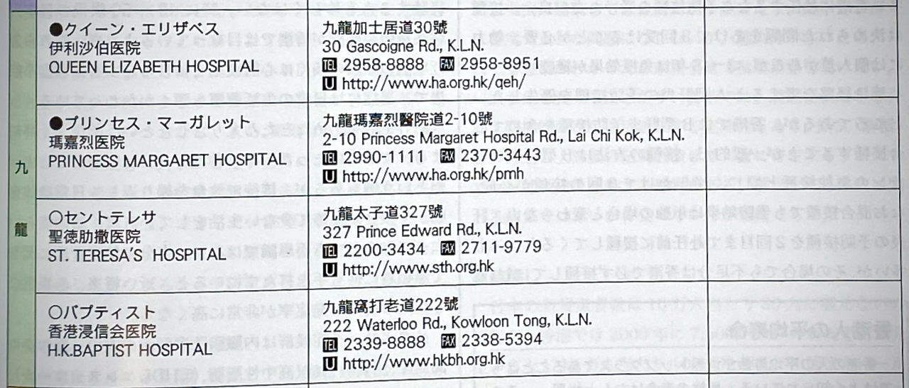 旅の途中、香港で具合が悪くなった時の為に、日本人駐在員が良く使う病院をご紹介しておきます。下記の両病院とも「香港島側」にあります。ともに日本語も通じますよぉ~。