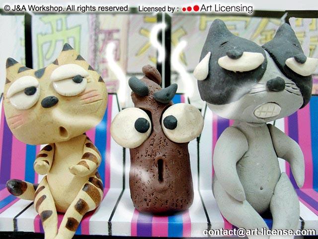 MTR(港鐵)で通勤する人に毎日ただで配られている「都市日報」に掲載されて、人気が出た花猫家族、陶芸家エナ・リョンさんが製作する猫キャラが活躍するシリーズです。蘋果日報(アップルデイリー)の日曜版に「花FIT週記」と題したシリーズが始まって、人気は急上昇。キティやフェリックスに迫る勢いです。