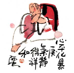 阿蟲は、布袋様のような人物のバックに人生訓を書いた絵で人気の画家&詩人。年輩の方なら武者小路実篤のイメージでしょうか。現代なら絵が入った相田みつをがいちばん近いでしょう。彼の絵は、多多西餅店の茶餐廰のような庶民的な場所でよく見かけます。