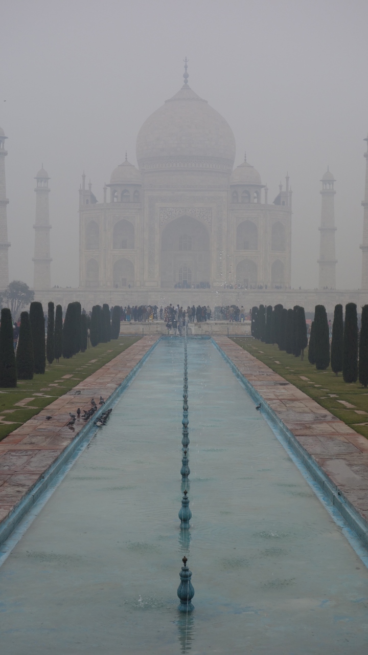 アグラーを含む北インドの冬は、寒い上に朝晩濃霧が発生します。我々は朝8時過ぎにタージマハールに到着しましたが、かなりの濃霧で数十メートル先が見えない程でした。どうしてもタージマハールの美しい姿が見たかったので午前中一杯粘り、結果的には素晴らしい姿は見れたものの、かなり冷えました。タージマハールの敷地内にあるベンチは、金属製なので、座ったら座ったでかなり冷えます。長い時間を過ごす予定がある場合は、しっかり着こんで行かれた方がいいと思います。