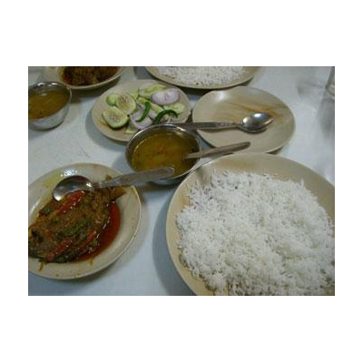 コルカタのSudder St.の東側の突き当たりのT字路を左(北)に曲がって3分ほど歩くと右手に紫色の看板が見える。この店はまだ開店して間もないらしく店はきれいだがメニューが置いていなかった。僕は魚のカレーとライスとダールと付け合せを食べたが、魚のカレーが絶品だった。全部でRs.59と値段も手ごろで、ぜひお勧め。魚の名前は忘れてしまったが何種類かあるようだった。インドとバングラデシュの国旗が飾ってあって、もしかしたらバングラデシュ料理なのかも。
